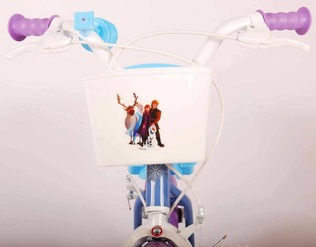 Veiligheid staat voorop! Daarom heeft deze gave fiets geen terugtraprem maar twee handremmen en afneembare zijwieltjes. Daarnaast heeft de fiets een leuke toeter. Ook aan het comfort is gedacht. De mooie blauw met paarse Frozen fiets is voorzien van een poppenzitje en een mandje. Om zo lang mogelijk van de fiets te kunnen genieten zijn het zadel en stuur in hoogte verstelbaar.